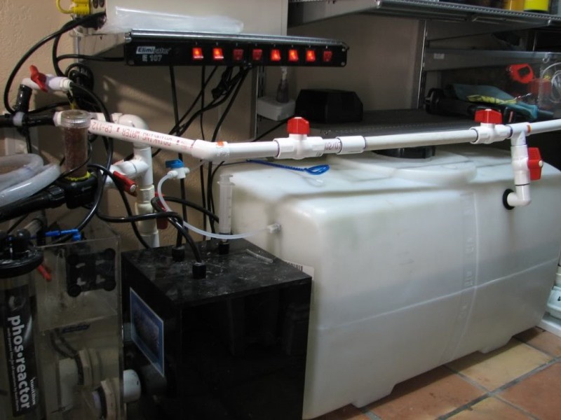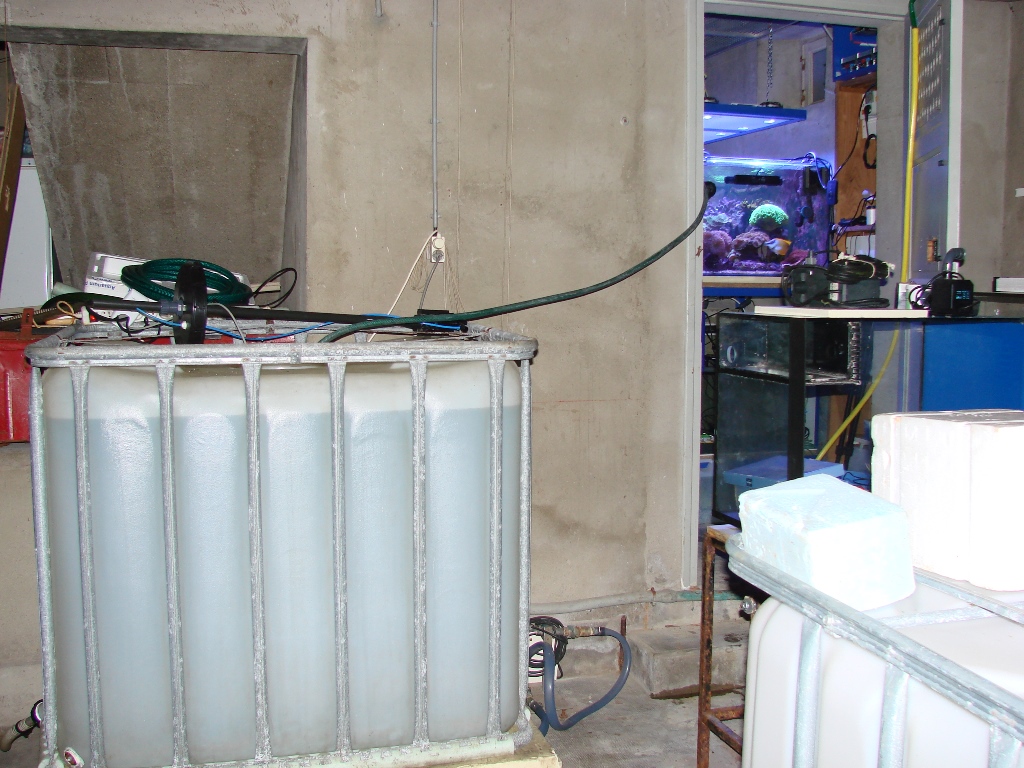 Quand la place le permet, une réserve d’eau importante peut être préparée à l’avance et conservée longtemps par un brassage et une oxygénation efficace, par une prise d’air sur un système venturi d’une pompe par exemple. En cas de besoin, elle permettra de pallier à un changement d’eau plus important ou même total.