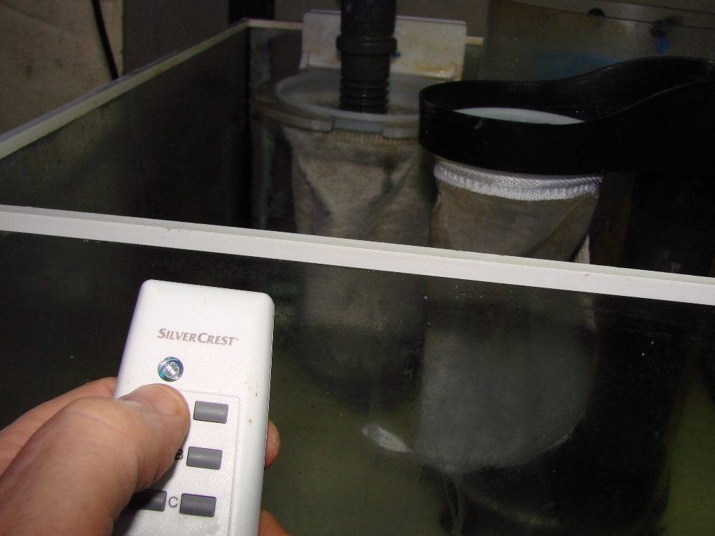 Dans le cas cité, le remplissage se fait par la descente de la colonne de débordement de la cuve principale pour tomber dans la cuve de filtration. La pompe de remplissage pourra être branchée sur une prise télécommandée pour un meilleur contrôle à distance.