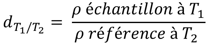 La densité (d) est le rapport entre la masse volumique (ρ) de l’eau à tester et celle de l’eau pure de référence, une valeur sans dimension.